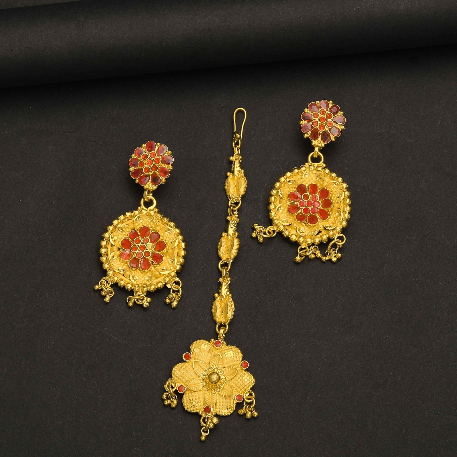- 📦 Includes: 1 Elegant Gold-Plated Traditional Mix Choker with matching earrings and Maang Tikka