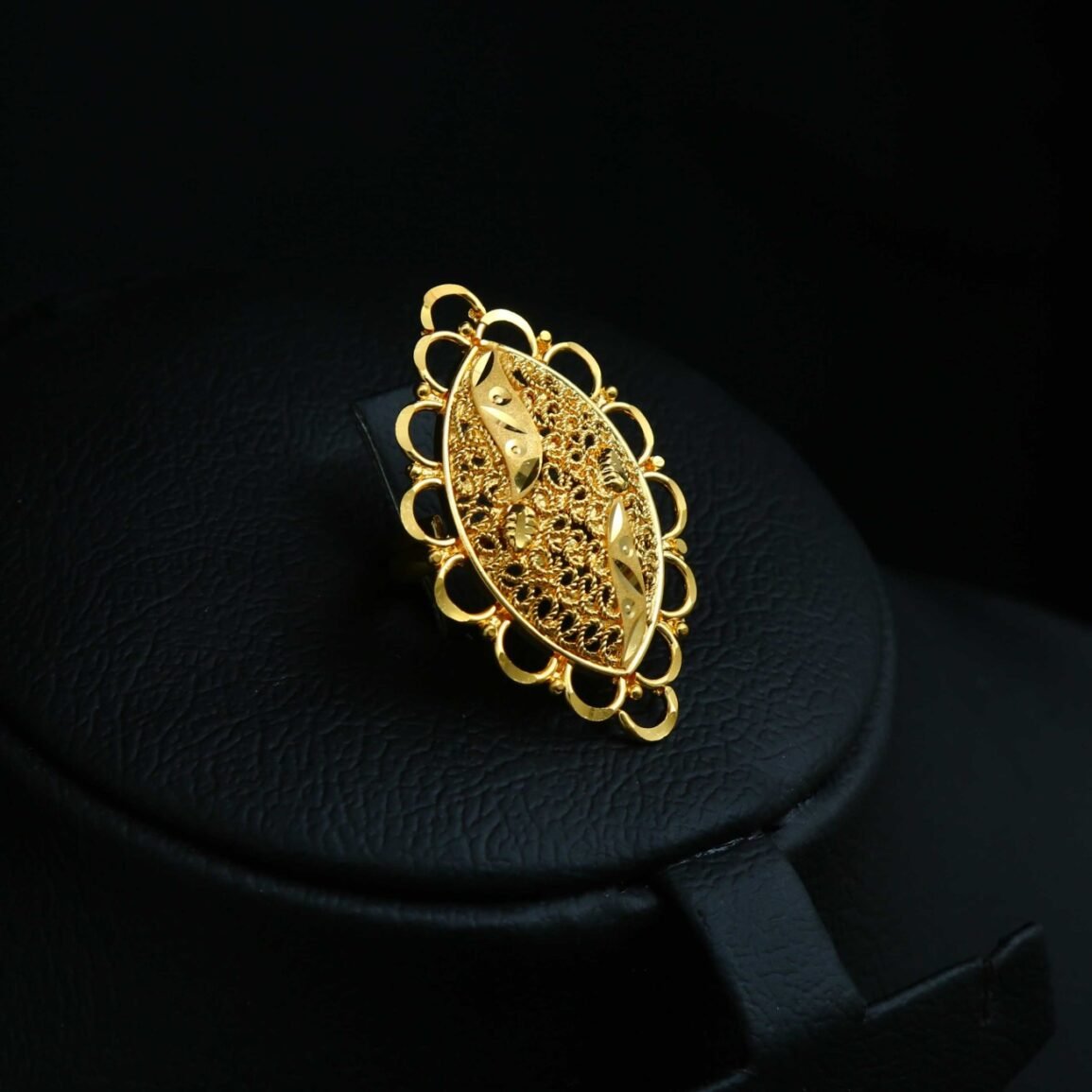 Add a touch of elegance with Aurora Souq’s Exclusive Textured Gold Plated Peanut Ring. Perfect for modern and traditional attire, this unique ring ensures a classy and graceful look.
