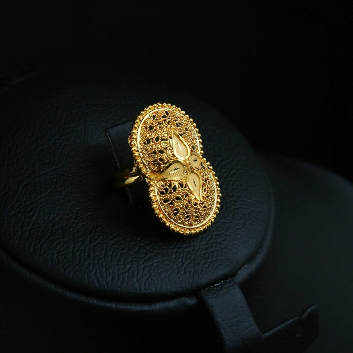 A fabulous and trendy attire deserves attractive matching accessories. Pair our premium Exclusive Textured Gold Plated Peanut Ring with your favorite outfit and make your look classy and graceful. This ring is a perfect choice for those searching for contemporary rings that add a touch of sophistication. Made from pure quality materials, this ring ensures you look rich and gorgeous with a simple touch.