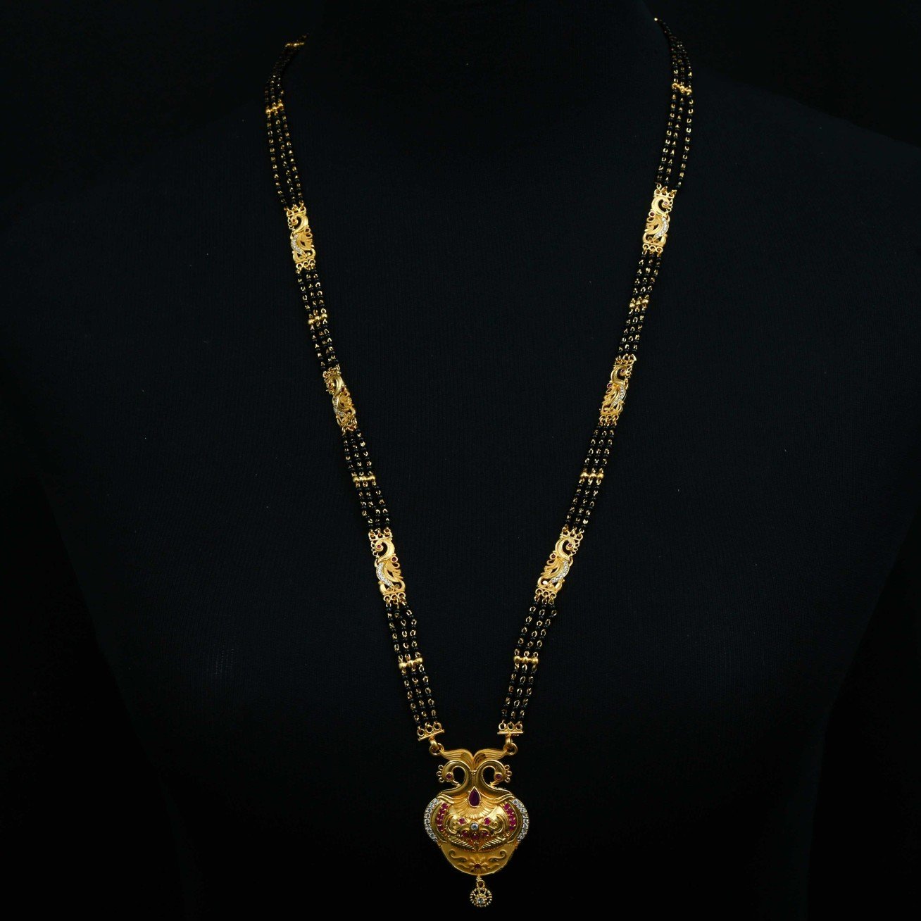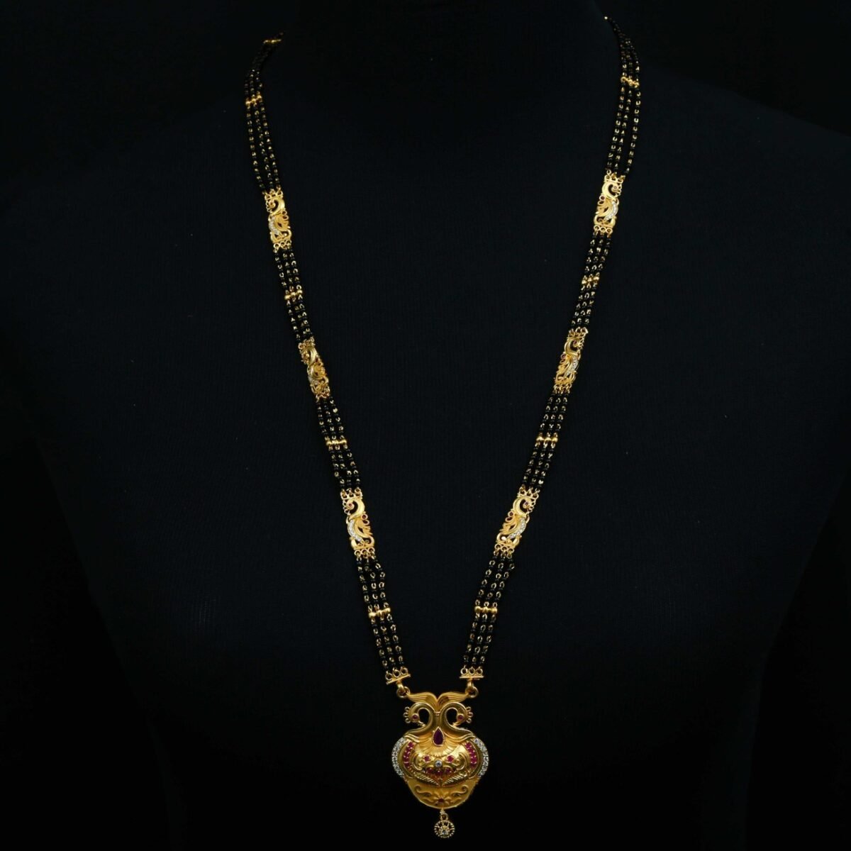 β Elegant Design: Traditional Mangal Sutra design with black beads and intricate gold detailing.