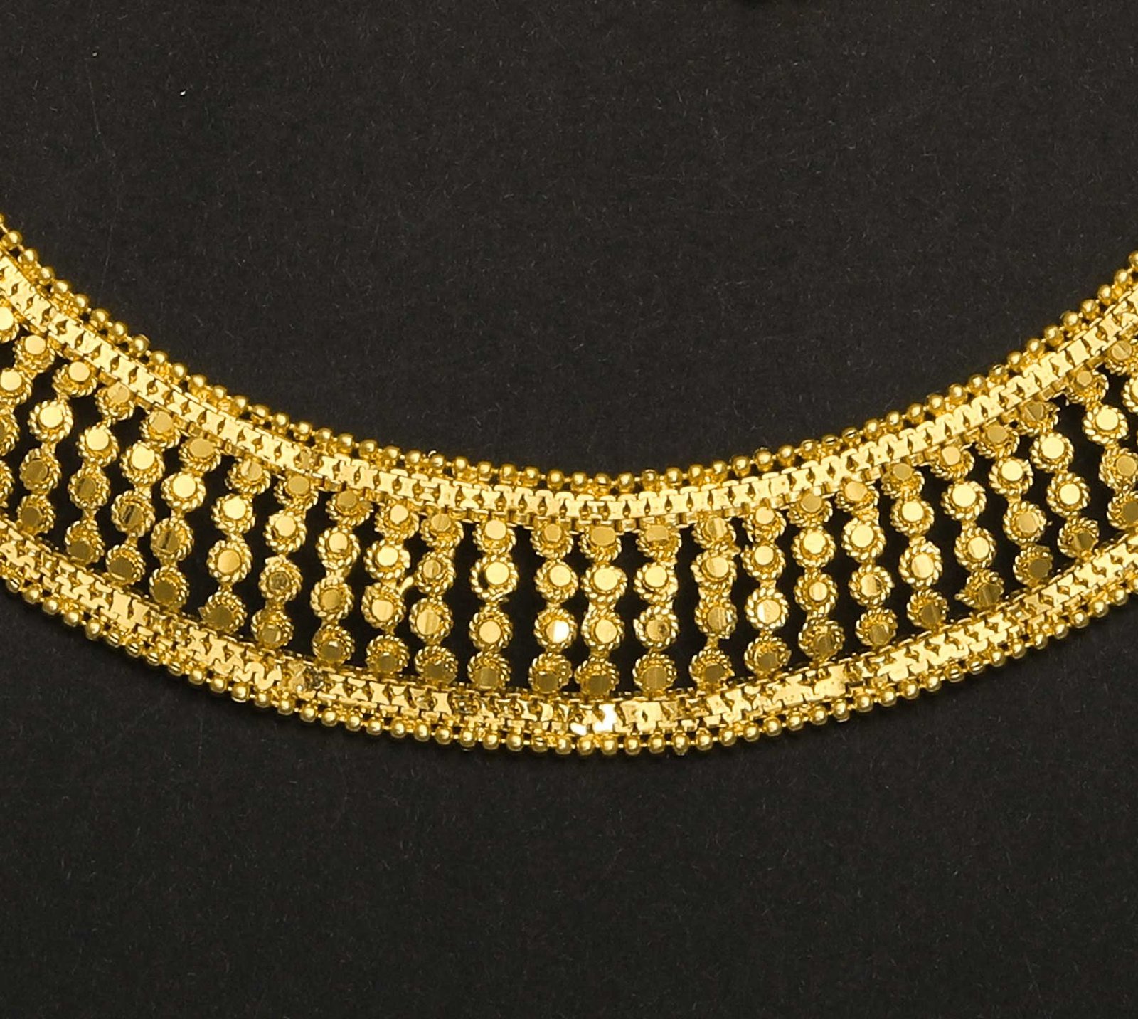 πŸ’ Exquisite Design: Elegant round choker with intricate gold detailing and matching earrings