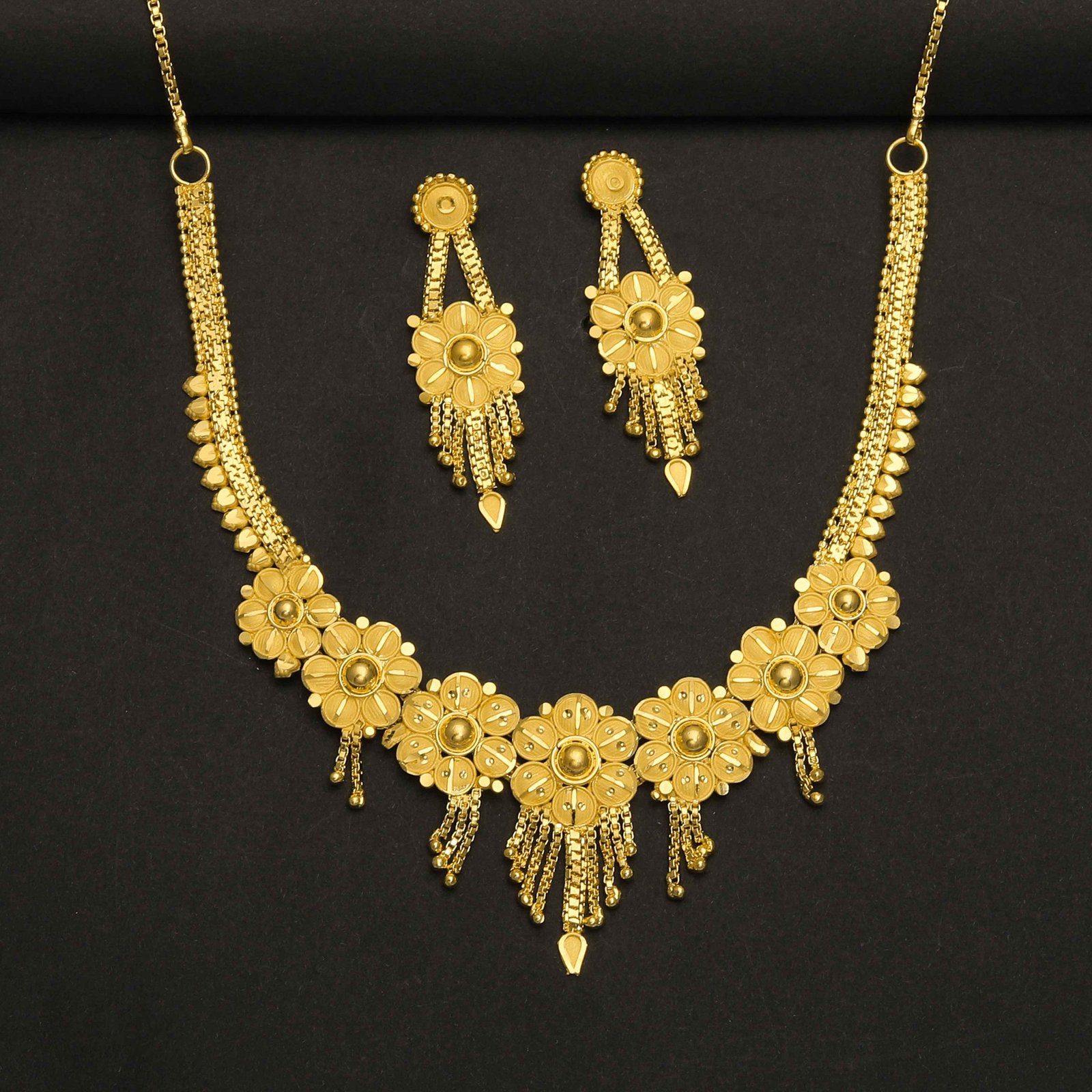 - πΈ Elegant Design: The necklace and matching earrings boast intricate floral designs and hanging elements, adding a touch of sophistication to any outfit.