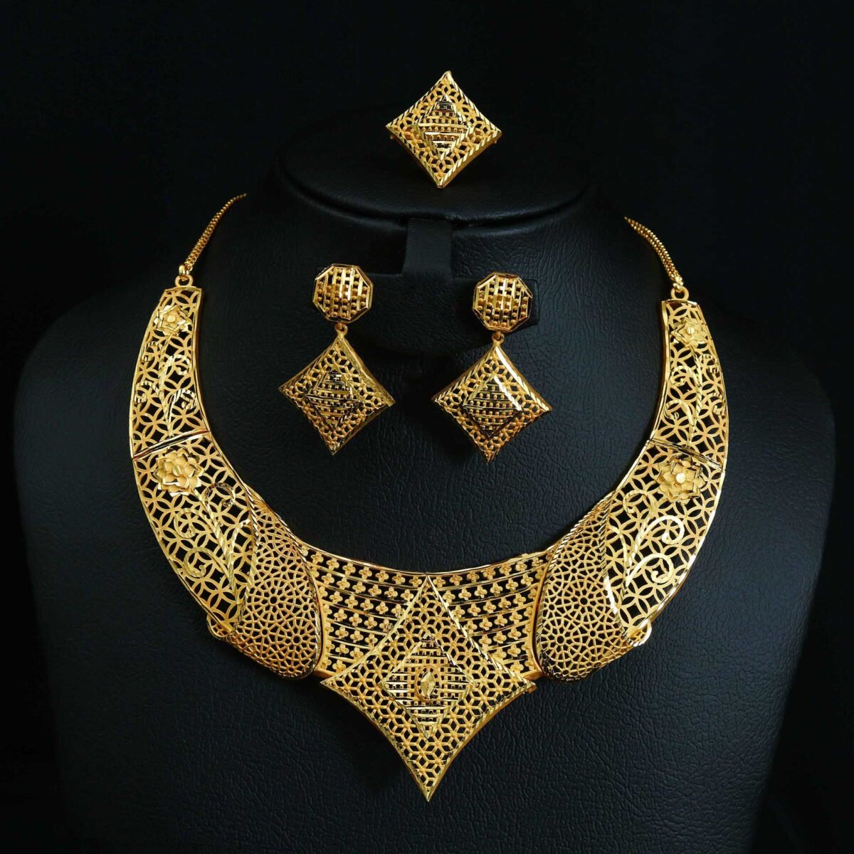 - π Exquisite Design: Stunning 24k gold-plated wedding set with intricate polished designs.