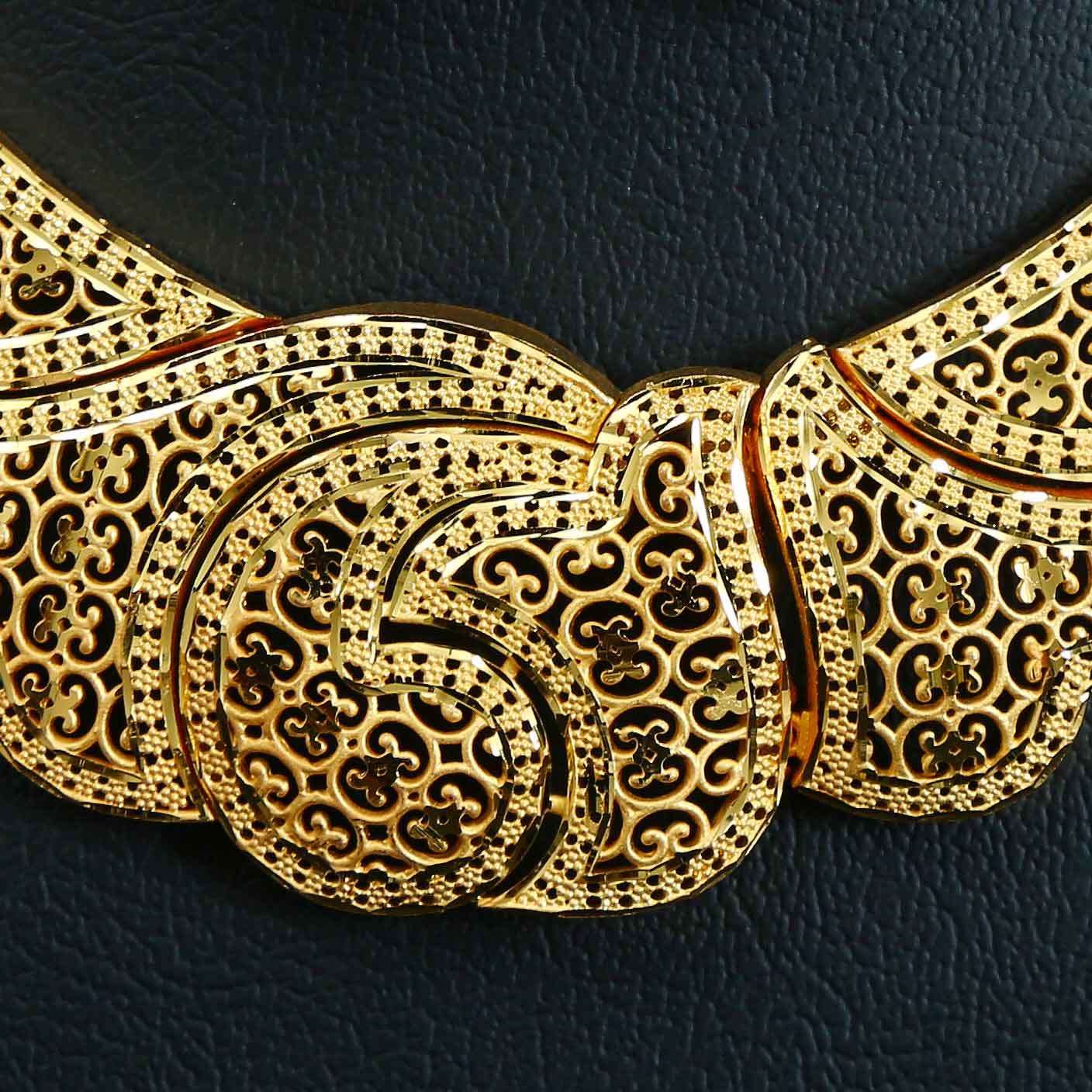 π Exquisite Design: Elegant floral-inspired gold design necklace with matching earrings